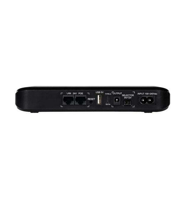 Описание товара Источник бесперебойного питания UPS-1812 Type-C (20000mAh LiFePo4) 5V/9V/12V/24V/PoE, LiFePo4 4*5Ah, для роутера и медиа конвертераМиниатюрный источник бесперебойного питания UPS-1812 Type-C (20000mAh LiFePo4) с четырьмя встроенными аккумуляторными батареями LiFePo4 емкостью 5000 мАч (общая емкость 20000 мА*ч), выходные интерфейсы USB, Type-C, DC, PoE, выходное напряжение 5 В (USB) + 5 В (Type-C) + 9/12 В (DC) перемыкается + 24 В (PoE), выходное напряжение/струм каждого выхода: USB: 5В/2А, Type-C: 5В/1А, DC: 9В/2А, 12В/1.5А, PoE: 24В/0.7А, максимальная выходная мощность 18Вт, входное напряжение AC 100-240В/50-60 Гц.В комплекте сетевой кабель питания 220В для миниБП длиной 80 см, кабель питания DC-DC длиной 35 см с разъемами, разветвитель питания DC-2 DC длиной 60 см с разъемами.ПрименениеИБП постоянного тока UPS-1812 Type-C позволяет питать оборудование при отключении электроэнергии. Обеспечивает питание и бесперебойную работу таких устройств как роутер, медиаконвертер, модем, видеокамеры, LED-освещение. Можно использовать как повербанк благодаря наличию USB порта.Мгновенное переключение на встроенную аккумуляторную батарею позволит работать в интернете без прерывания связи при отключении электроэнергии.Ключевые свойстваВстроенные 4 LiFePo4 аккумуляторные батареи емкостью 5000 мАч (общая емкость 20000 мАч). Выходные интерфейсы USB, Type-C, DC, PoE, выходное напряжение 5 В (USB) + 5 В (Type-C) + 9/12 В (DC) – переключается + 24 В (PoE). Выходящее напряжение и ток каждого выхода: USB: 5В/2А, Type-C: 5В/1А, DC: 9В/2А, 12В/1.5А, PoE: 24В/0.7А. Максимальная выходная мощность 18 Вт. Входное напряжение AC 100-240 В/50-60 Гц. Система защиты от перезаряда, переразряда, короткого замыкания. Индикатор уровня заряда батареи и статуса работы устройства. Компактное и легкое устройство с размерами 206 / 120 / 35 мм и весом 640 г.