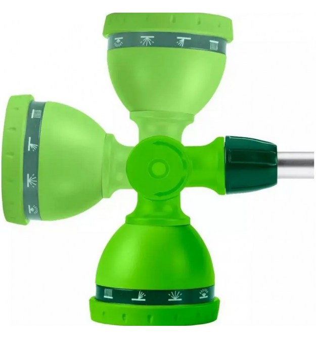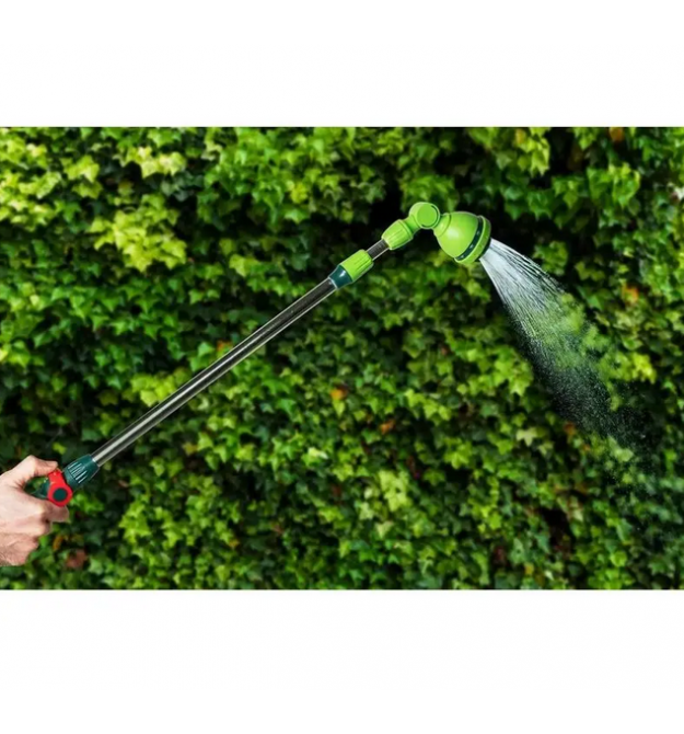 Штанга оснащена функцией регулировки, позволяющей подобрать мощность струи (выдерживает давление до 8 бар) в соответствии с поставленной задачей, а телескопическая алюминиевая конструкция позволяет опрыскивать объекты или растения на высоте (например, балконы). Копье регулируется по общей длине от 79 до 115 см или от 28 до 48 дюймов. Четкая маркировка позволяет легко выбрать нужный тип распыления. На выбор предлагается 10 разных типов распылителей. Ручка из крепкого ABS-пластика эргономичной формы хорошо лежит в руке, а дополнительное резиновое покрытие TPR гарантирует, что она не скользит, повышая комфорт. Благодаря движущейся на 180 градусов в обеих плоскостях головке возможна любая настройка для точечного полива. Движимая головка и телескопическая конструкция увеличивает универсальность воронки и делает ее пригодной для многих применений.