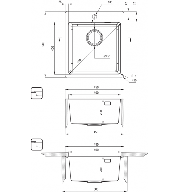 | Глубина раковины | 200 мм |