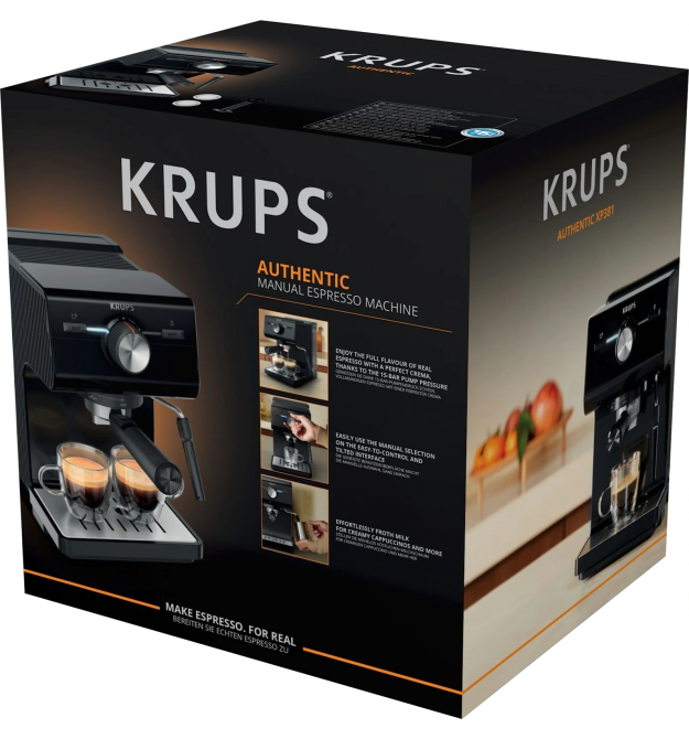 Освойте искусство приготовления кофе с помощью ручной эспрессо-машины. С Krups Authentic у вас дома всегда будет кофе качества бариста! Наслаждайтесь полным вкусом настоящего эспрессо благодаря умному, интуитивно понятному дизайну и специальным фильтрам со свежим или предварительно смолотым кофе.