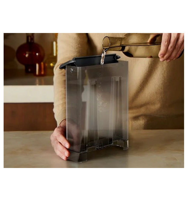 Объем съемного контейнера для воды 2 литра. Этого достаточно, чтобы приготовить различные кофейные напитки для семьи и гостей. Откидная крышка добавляет комфорта и практичности.