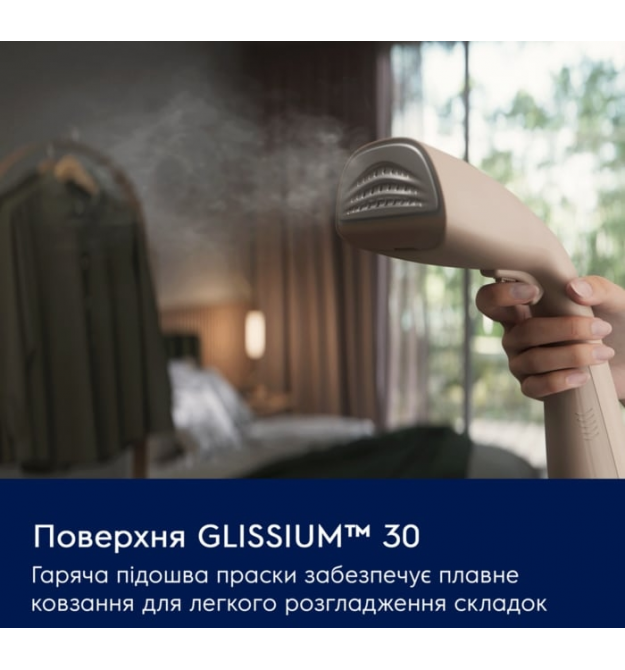 Контактная поверхность Glissium 30 с подогревом легко скользит по всем типам тканей и быстро разглаживает складочки. Ваша одежда всегда будет выглядеть как можно лучше, излучая непревзойденную свежесть.