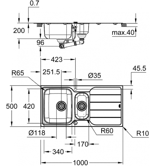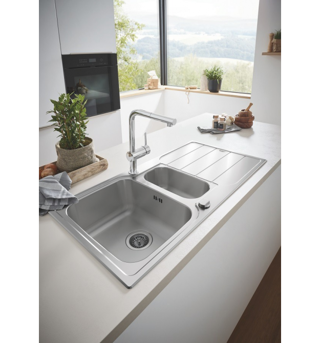 Мойка изготовлена из нержавеющей стали Grohe Long-Life Shine AISI 304 с матовой отделкой, чтобы сделать поверхность менее пористой и чтобы ее легче было поддерживать в чистоте, а это значит, что она будет хорошо выглядеть более длительный срок. Благодаря системе Grohe QuickFix установка выполняется быстро и легко, и дополнительное оборудование не требуется. Классическая установка на столешницу с профилем 7 мм.