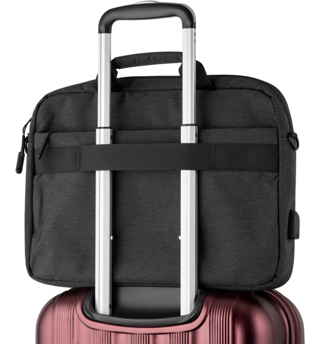 Карман для аксессуаров на передней панели с размерами 31*8 см и горизонтальной молнией; На фронтальной части ещё один карман, с вертикальным входом, имеет размеры 32*28 см габариты входа ограничиены длинной молнии 22см в котором можно разместить ключи, блокнот, мелкие полезные аксессуары, и даже зонт, и полутора литровую бутылку воды. На задней стенке сумки фикстор на телескопическю ручку чемодана. А над ним ещё один карман, так называемый газетный отсек.