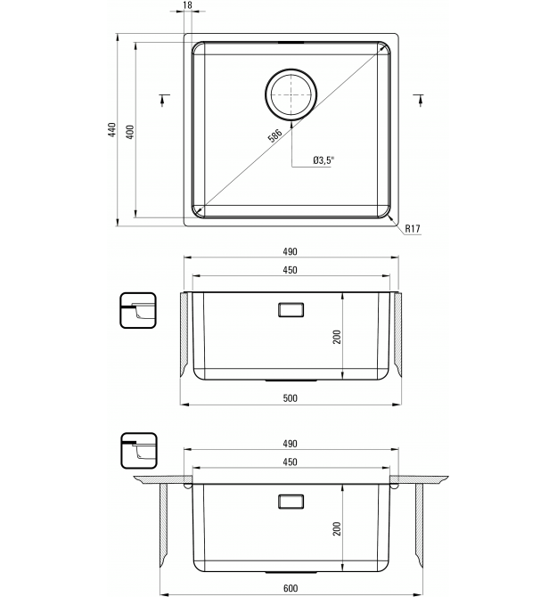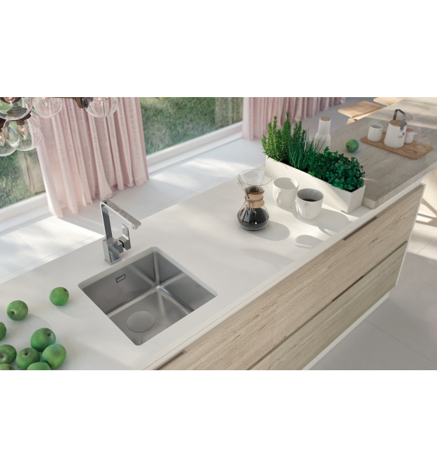 Раковина оснащена современным сифоном «Space Saver». Если вас раздражали колена и трубы, занимающие большую часть пространства в шкафу, это решение для вашей кухни. Телескопическая и специальная конструкция позволяет регулировать положение сифона в соответствии с вашими потребностями. Благодаря этому в шкафу появляется гораздо больше места, например, для домашних заготовок или мусора. К сифону также можно подключить посудомоечную или стиральную машину. И самое главное - вы получаете сифон в комплекте!