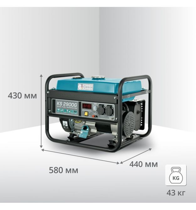 Газобензиновые генераторы Könner & Söhnen серии Dual Fuel на сегодняшний день наиболее популярны среди покупателей из-за своей экономичности и экологичности. Вы можете использовать генератор как на бензине, так и на сжиженном газе (пропан-бутан). Эксплуатация генератора на газу повышает моторесурс двигателя. Все необходимое для подключения баллона идет в комплекте: генератор оснащен регулятором нулевого давления, шлангом с понижающим редуктором. Необходимо только подсоединить генератор к Вашему газовому баллону. Генератор не предназначен для подключения к газовой магистрали. При необходимости газобензиновые модели легко переключить на работу на бензине. Мощный одноцилиндровый 4-х тактный двигатель K&S с воздушным охлаждением обеспечивает стабильную и надежную работу генератора.