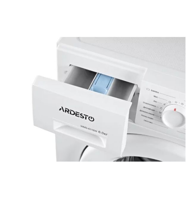 Автоматическая стиральная машина белого цвета с фронтальной загрузкой белья. Ardesto WMS-6118W рассчитана на загрузку 6 кг белья. Максимальная скорость отжима достигает 1000 оборотов в минуту, а класс энергосбережения – A++. Для различных типов ткани и степени загрязнения доступны 16 программ стирки.