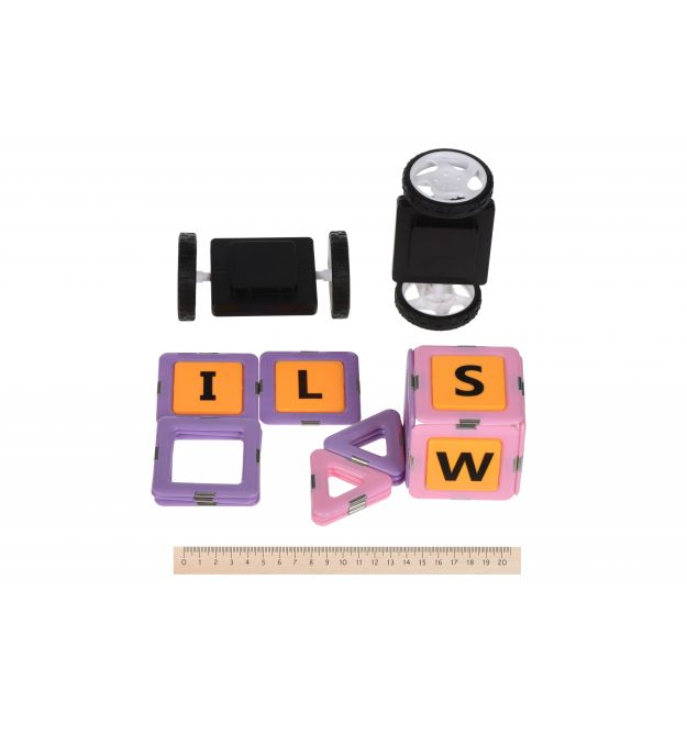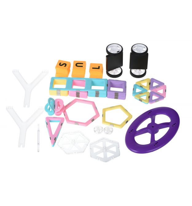 Конструктор Magplayer – набір намагнічених деталей. Особливість конструктора у тому, що для складання не потрібно жодних допоміжних елементів. Усі деталі по периметру мають спеціальні магніти, завдяки яким кріпляться один до одного. Набір із 88 деталей – великий комплект. Представлена комплектація призначена для дітей від 3 років. За допомогою елементів з набору можна сконструювати різноманітні моделі, фігури, наприклад, автомобіль або зірку.