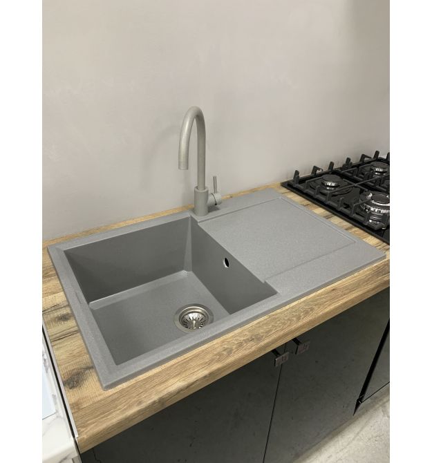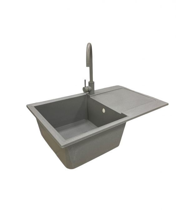Adamant Набор кухонный Horizon, искуственный камень, прямоуг., с крылом, 780х495х230мм, чаша - 1, врезная, серый + смеситель