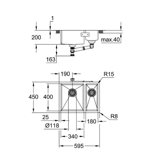 | Размеры мойки | 595 x 450 |