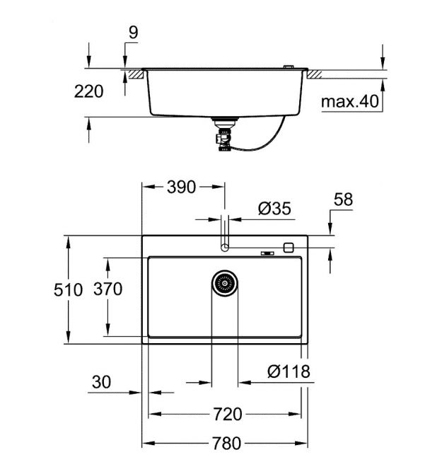 | Размеры мойки | 780 x 510 |