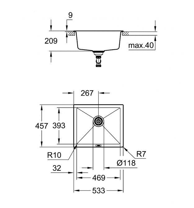 | Размеры мойки | 533x457 |