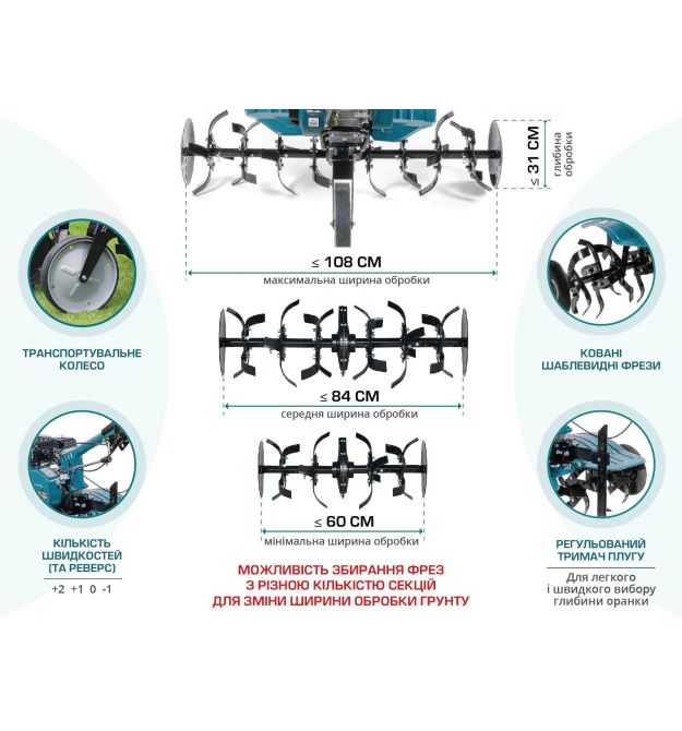 | Ширина захвата культивации | 108 см |