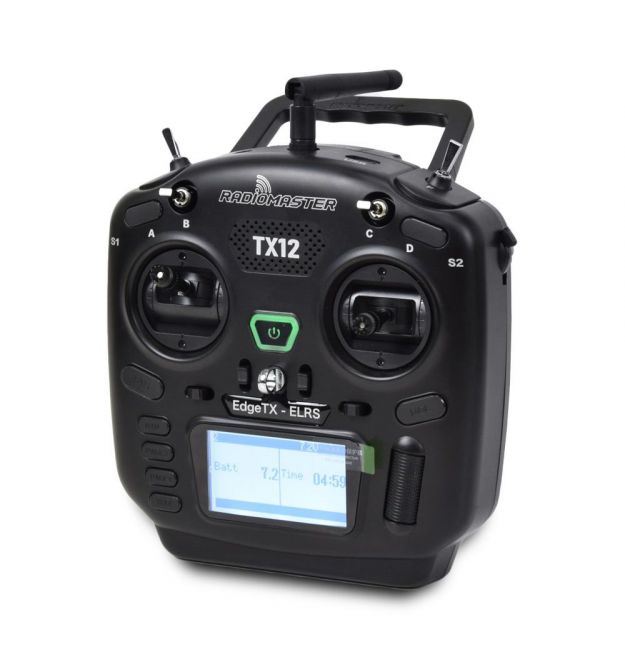 RadioMaster TX12 компактний пульт керування для FPV дронів з прошивкою EdgeTX, регульованими стіками з датчиками Холла і можливістю підключення зовнішніх передавальних модулів. Сумісність: TBS Crossfire Micro. ВЧ-чіп: ExpressLRS (ELRS)/CC2500. Прошивка: EdgeTX (передавач) / ExpressLRS (радіомодуль) / MPM (радіомодуль). РК-дисплей: монохромний 128 x 64 точок. Зовнішній модуль: JR/FrSKY/Crossfire сумісний. Частота: 2.400 ГГц - 2.480 ГГц. Діапазон напруги: 6.6-8.4 В постійного струму. Канали: до 16 (залежно від ресивера). Gimbal: Високоточні підвіси Холла. Метод оновлення: USB/SD-карта і EdgeTX Buddy онлайн або програмне забезпечення EdgeTX Companion для ПК. USB-зарядка: QC3 USB-C. Розмір: 170 x 159 x 108 мм