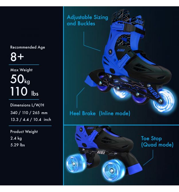 NEON Ролики Combo Skates[Синий (Размер 30-33)]