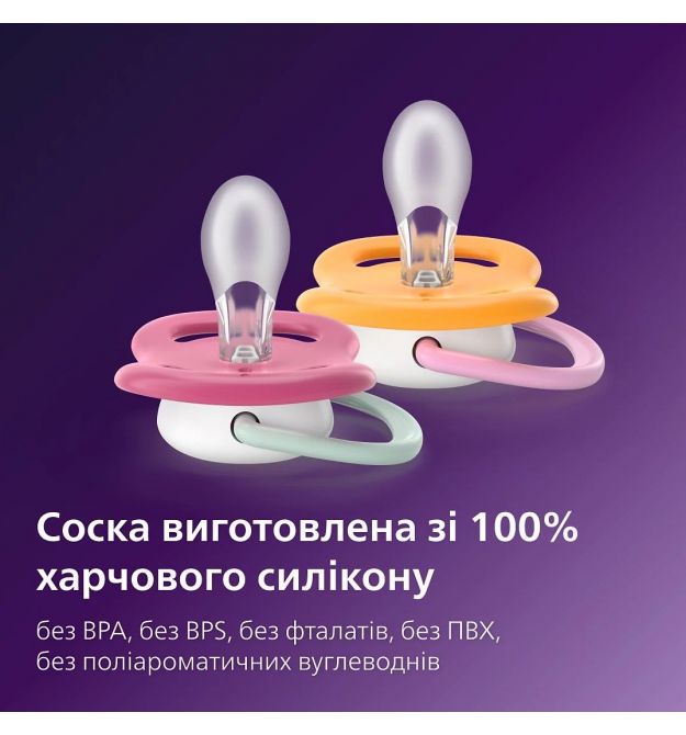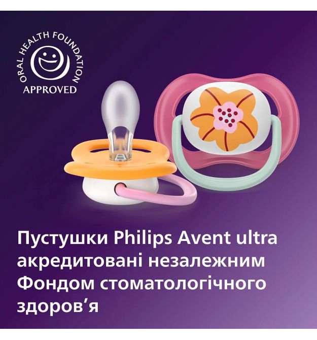 AVENT Philips Avent SCF080/27 Ultra Air pacifier, 6-18 months, 2pcs, girl design.