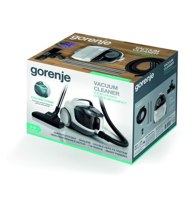 Пылесос Gorenje VCEA01GACWCY используется для бытовых уборок помещения. Он имеет стильную внешность и отлично справляется с уборкой мусора разного типа с поверхностей. Но, помимо этого, предпочтение данному пылесосу стоит отдать из-за того, что он осуществляет фильтрацию воздуха. Выпускной НЕРА-фильтр тонкой очистки имеет двуслойную структуру, за счет чего не оставляет в воздухе, выходящем наружу, ни малейших загрязнений.