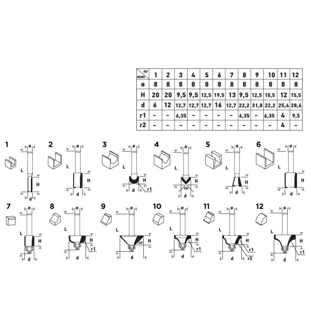 | Совместимость | ручні фрезери/тримери з цангою 8 мм |