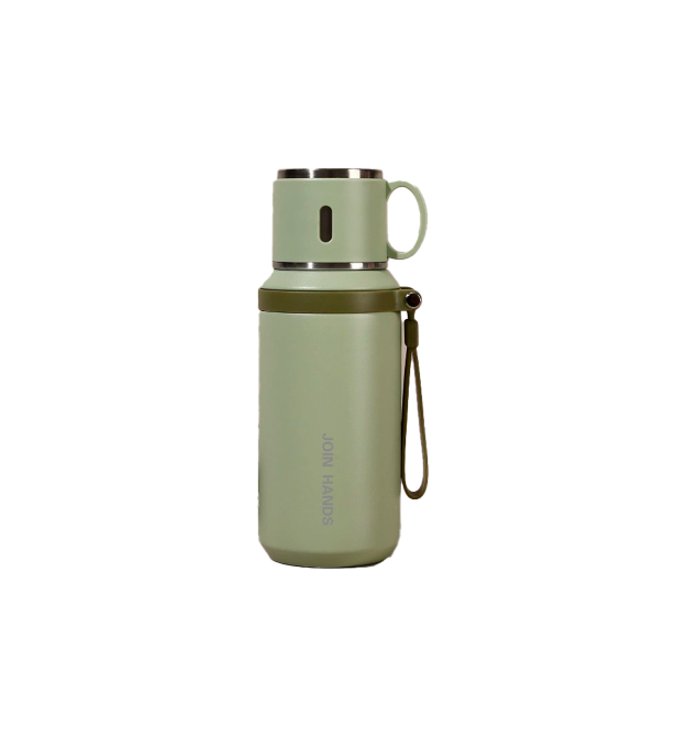 Термос для чаю Merlion з нержавіючої сталі, з чашкою та ручкою для перенесення, об&aposєм 600 мл., зелений