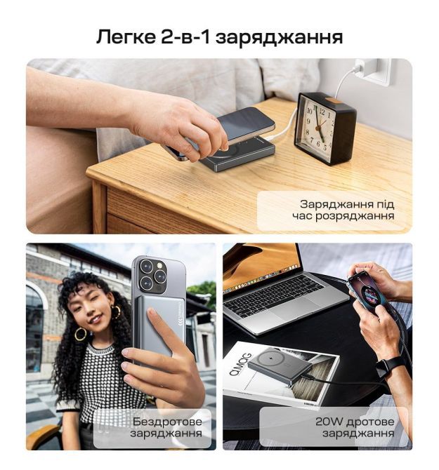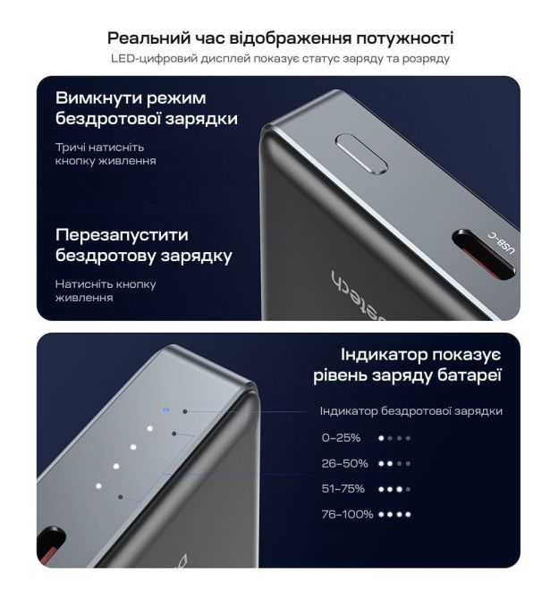 | Вхідний інтерфейс | Type-C вхід 18 Вт, вихід 20 Вт, двонаправлений – заряджання і розряджання |