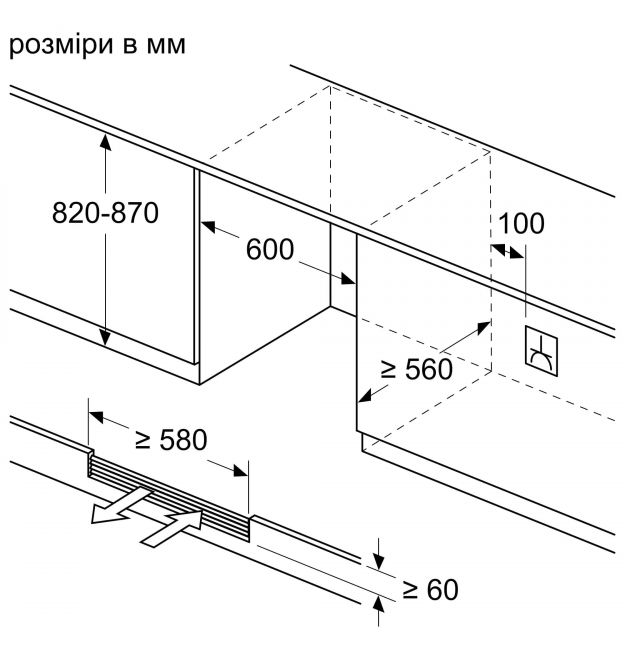 | Размеры для встраивания (ВхШхГ) | 82 х 60 х 56 см |