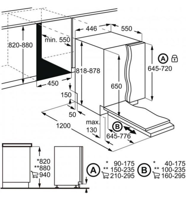 | Высота для встраивания | 820 мм |