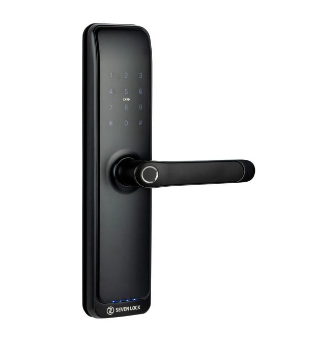 Умный замок SEVEN LOCK SL-7767BFW-T с управлением через смартфонВаш вход в Безопасность и КомфортСмарт-замок - это современная альтернатива традиционному замку, которая открывает дверь без физического ключа: смартфоном, отпечатком пальца, PIN-кодом или электронным брелком. Такое решение является эволюцией традиционных механических замков, дополняя их современными цифровыми функциями.Смарт-замки не только обеспечивают надежную защиту, но и добавляют комфорта в повседневное пользование.Как работает электронный замок SEVEN LOCK SL-7767BFW-T?Принцип работы умного электронного замка для дверейПринцип работы заключается в использовании электронного модуля, который управляет механизмом открытия и закрытия дверей. Идентификация происходит через смартфон, PIN-код, отпечаток пальца, радиобрелок или карту. После проверки прав доступа, если вход разрешен, устройство открывает замок. В закрытом состоянии ручка свободно нажимается, но не активирует механизм. После успешной идентификации ручка входит в зацеп, и при нажатии поворачивает квадрат врезного механического замка, открывая дверь. Изнутри дверь всегда открывается простым нажатием на ручку.Управление врезным механическим замкомУмный замок может управлять как стандартным врезным механическим замком, который уже установлен в вашей двери, так и специальной врезной частью, разработанной для смарт-систем. В случае обычного механического замка управление осуществляется только язычком. Если же используется специальная врезная часть для умных замков, вы сможете управлять не только язычком, но и основными ригелями. Вы можете закрывать и открывать основные ригели при помощи подъёма и опускания ручки замка, что значительно повышает уровень безопасности.Замок поддерживает ручную блокировку изнутри: на внутренней ручке расположен переключатель электронной блокировки. В заблокированном режиме дверь можно открыть только администратору или с помощью механического ключа.Замок имеет механический вертушок для управления дополнительной внутренней защелкой - это обеспечивает повышенный уровень безопасности и позволяет заблокировать дверь вручную.Подбор врезной части для электронного замка SEVEN LOCK SL-7767BFW-TПри выборе врезной части, обратите внимание на три ключевых параметра:Бэксет (расстояние от края двери до центра квадрата). Размер лицевой планки замка. Поддержка функции автозакрытия или закрытия поднятием ручки вверх.