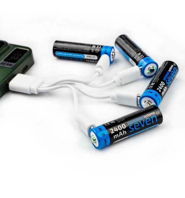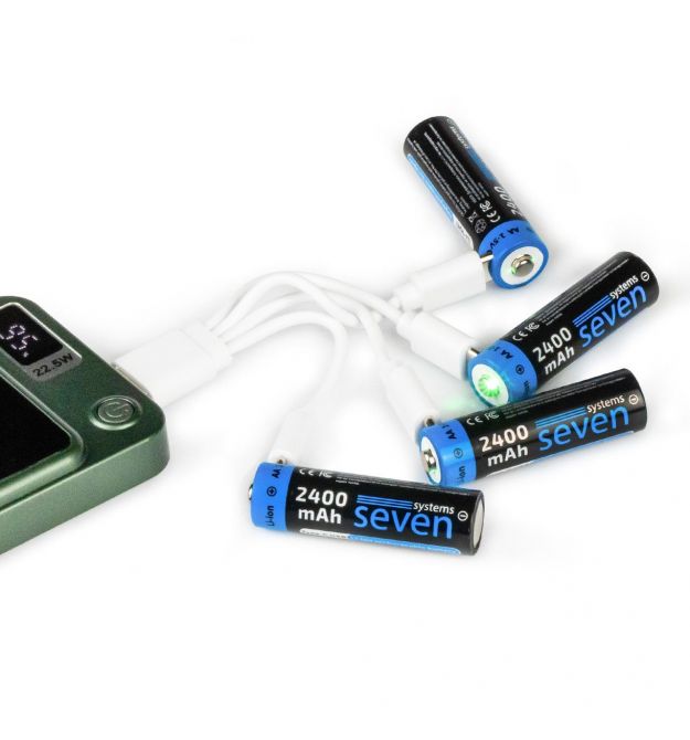 Аккумуляторы SEVEN AA 1.5 V - выгодная альтернатива пальчиковым батарейкамSEVEN AA 1.5 V Li-ion - инновационные аккумуляторы нового поколения: ёмкость 2400 mAh, защита от перегрузок и встроенный USB Type-C делают их надёжным и долговечным источником питания. Больше не нужны отдельные зарядные устройства - просто подключите их к любому USB-источнику и заряжайте сразу 4 батарейки одновременно.Аккумуляторная батарейка подходит ко всем электронным устройствам, где используются пальчиковые батареи АА, таким как игрушки, пульты дистанционного управления, фонарики, косметические приборы, Bluetooth-мыши, Bluetooth-клавиатуры, бритвы, электронные замки, тонометры, микрофоны и т.д.В системах контроля доступа аккумулятор SEVEN AA 1.5 V идеально подходят для смарт-замков. Благодаря устойчивости к низким температурам их можно использовать в замках, установленных на улице. Если обычных батареек хватает примерно на 1 год работы, то аккумуляторы обеспечивают практически «вечную» энергию для умного замка - их можно перезаряжать до 1000 раз.Принцип работы аккумуляторной батарейки SEVEN AA 1,5 ВЛитий-ионные аккумуляторы SEVEN AA 1.5 V с емкостью 3600 mWh (2400 mAh) обеспечивают надежное и стабильное питание для электронного оборудования. Они поддерживают постоянное напряжение 1.5 V, что гарантирует длительную и эффективную работу устройств без потери производительности.Благодаря повышенной емкости в 3600 mWh, аккумуляторная батарейка SEVEN обеспечивает значительно более длительное время работы ваших устройств без необходимости частой подзарядки. По сравнению с обычными батарейками и аккумуляторами с меньшей емкостью, она работает заметно дольше, обеспечивая стабильное питание даже при высоких нагрузках. Это особенно важно для электронных устройств, таких как смарт-замки, системы контроля доступа или беспроводные датчики, которым требуется стабильная и надежная подача питания для бесперебойной работы.Такая батарейка гарантирует максимальную продолжительность работы устройств, высокую энергоэффективность и экономию на частой замене элементов питания, обеспечивая больше пользы и удобства в повседневном использовании - от пультов и мышек до детских игрушек и фонариков.Благодаря возможности многократной зарядки, батарейки являются экономичным и экологичным решением для повседневного использования. Обычные батарейки токсичны и вредят окружающей среде. Их следует сдавать на переработку, хотя это сложно и дорого. Переход на аккумуляторы помогает уменьшить вред природе и упрощает утилизацию, ведь 1 комплект современных устройств заменит около 1000 солевых батареек.SEVEN AA 1.5 V Li-ion пригодны для повторного использования и рассчитаны до 1000 циклов перезарядки.Быстрая зарядка - всего до 4 часов. О готовности батарейки к использованию сообщит световой индикатор, расположенный на корпусе.Аккумуляторные батарейки с зарядкой - удобно и практичноЗаряжайте аккумуляторы SEVEN где угодно от:Внешнего аккумулятора (powerbank). Автомобильного зарядного устройства. USB-порта компьютера или ноутбука. Сетевого адаптера. Солнечной панели.Для удобства использования аккумуляторы оснащены светодиодным индикатором зарядки.Во время зарядки индикатор мигает зелёным. При завершении зарядки - светится постоянным зелёным светом.Преимущества аккумуляторных батареек SEVEN AA 1.5 V Li-ionСтабильное напряжение 1,5 В - надёжное питание 