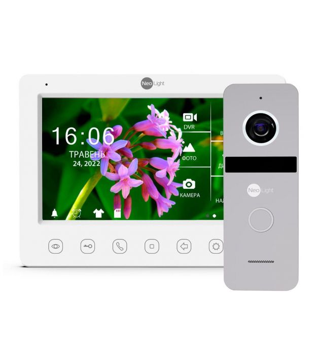 Комплект видеодомофона NeoLight Kappa+ HD WF 7 дюймов и вызывной панели NeoLight Solo Silver предназначен для голосовой и видеосвязи. В комплект входит сенсорный монитор диагональю 7 дюймов белого цвета и вызывная панель NeoLight SOLO FHD Silver.Главной особенностью данного видеодомофона является возможность подключения его к сети интернет для переадресации вызова на смартфон.Kappa+ HD WF имеет полный функционал и поддерживает Full HD сигнал с разрешением 1080р (1920х1080), ведет запись видео и аудио по движению и имеет возможность устанавливать любимую mp3 мелодию на вызов. Монитор позволяет переадресацию вызова из видеопанели на мобильное приложение "NeoLight" (iOS, Android), которое установлено на смартфоне или планшете. Важно - для корректной работы оборудования необходимо стабильное интернет-подключение в помещении, где находится домофон. Для соединения Kappa+ HD WF с роутером можно использовать Wi-Fi или LAN подключения.Особенности видеодомофона NeoLight Kappa+ HD WF Silver:Встроенный модуль Wi-Fi для переадресации вызова на телефон/планшет, удаленного открытия замка/ворит, просмотра камер, архива и др. при с помощью приложения "NeoLight". LAN порт для подключения к роутеру сетевым кабелем при нестабильном сигнале Wi-Fi в помещении, где находится монитор Kappa+ HD WF. Full HD разрешение высокого качества (1080р) - видеодомофон Кappa+ HD WF поддерживает разрешение входного сигнала к 1080р как от панели, так и от камеры на любом канале. Высокое разрешение монитора 1024 х 600 - по сравнению со стандартными мониторами с разрешением 800 х 480 Kappa+ HD WF максимально качественно передает изображение Full HD сигнала, которое по детализации аналогично отображению в IP домофонах. Автоматическое определение разрешения и типа сигнала - монитор автоматически определяет тип и разрешение сигнала для каждого канала, таким образом к нему можно одновременно, без дополнительных настроек, подключить, например, старую многоквартирную панель со стандартным разрешением, Full HD панель у входа в квартиру и камеры Full HD для присмотра за пространством у квартиры. Запись видео вместе с аудио происходит со скоростью 25 к/сек и разрешением до 1920х1080, и может вестись по движению, постоянно или по расписанию. Теперь вы можете видеть и слышать без потери качества, что происходит за вашей дверью тогда, когда вас нет дома. Тонкий Slim корпус и встроенный блок питания - монитор KAPPA+ HD WF подключается непосредственно к источнику питания 220В, а также имеет возможность подключения к внешнему блоку питания.Видеодомофон Neolight KAPPA+ HD WF можно подключать к многоквартирным систем NeoLight и других производителей с помощью дополнительных адаптеров.Kappa+ HD WF работает с системами VIZIT, CYFRAL и др. с помощью адаптера NL-Z01, однако корректная работа домофона во многом зависит от качества линии передачи от вызывной панели до монитора.Основные функции NeoLight Kappa+ HD WF SilverWIFI И LAN. Kappa+ HD WF позволяет производить переадресацию вызова с панели в дополнение "NeoLight" (iOS, Android), установленный в смартфоне или планшете. Full HD. Видеодомофон Kappa+ HD WF поддерживает Full HD разрешение (1080р) как от панели, так и от камеры по любому каналу. Графическое меню. В домофоне Kappa+ HD WF меню представлено на двух страницах, где есть возможность выбирать фоновое изображение для рабочего стола или загрузить свое с помощью microSD карты. Сенсорные кнопки. Сенсорные кнопки видеодомофона NeoLight KAPPA+HD WF позволяют управлять видеодомофоном легким прикосновен