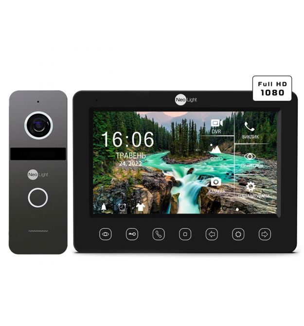 Комплект видеодомофона NeoKIT FHD Pro B/GraphiteNeoLight NeoKit FHD PRO — это готовый Full HD комплект с памятью, состоящий из домофона KAPPA+ HD Black и панели вызова SOLO FHD Graphite, которые оптимально подходят друг другу и настроены таким образом, чтобы получить максимально четкое изображение без шума в любых условий (плохая освещенная коридоры, засветка от лампы или окон, темная улица и т.д.) благодаря камере 2 Мп (1920 x 1080) с повышенной чувствительностью и интеллектуальной подсветкой. Также монитор позволяет записывать видео со звуком по движению с разрешением 1080p (1920 x 1080) и скоростью записи до 25 к/сек, что обеспечивает четкое и плавное изображение в режиме просмотра архива видеорегистратора.Главные особенности комплекта NeoLight NeoKit FHD PRO:Full HD разрешение высокого качества (1080р) - видеодомофон Kappa+ HD поддерживает разрешение входного сигнала до 1080р как от панели, так и от камеры на любом канале. Высокое разрешение монитора 1024х600 - по сравнению со стандартными мониторами с разрешением 800х480 Kappa+ HD максимально качественно передает изображение Full HD сигнала, которое по детализации аналогично изображение в IP домофонах. Автоматическое определение разрешения и типа сигнала — монитор автоматически определяет тип и разрешение сигнала для каждого канала, таким образом к нему можно одновременно, без дополнительных настроек, подключить, например, старую многоквартирную панель со стандартным разрешением, Full HD панель у входа в квартиру и камеры Full HD для присмотра за пространством у квартиры. Запись видео вместе с аудио происходит со скоростью 25 к/сек и разрешением до 1920х1080, и может вестись по движению, постоянно или по расписанию. Теперь вы можете видеть и слышать без потери качества, что происходит за вашей дверью тогда, когда вас нет дома. Тонкий Slim корпус и встроенный блок питания — монитор KAPPA+ HD подключается непосредственно к источнику питания 220В, а также имеет возможность подключения к внешнему блоку питания. Мультиформатная профессиональная камера с разрешением 1920х1080 - разрешение IP домофонии теперь стало доступно и в аналоговых системах, но по сравнению с IP, в аналоговых Full HD системах вы получаете значительно лучшую чувствительность ночью, легкое подключение и настройка, передача изображения без задержек и невысокую стоимость; Режим True Day/Night - реальная цветопередача днем и идеальное черно-белое изображение ночью благодаря настоящему ИК-фильтру, впитывающемуся в камеру (ICR); Режим DNR — цифровое подавление шумов, максимально минимизирующее возможность появления шумов в темное время суток на изображении, что повышает информативность и экономит место на micro SD карте при работе со встроенным в монитор детектором движения; Smart IR – теперь любой человек, подходящий близко к панели в темное время суток при включенной ИК подсведке будет вами узнаваемый, т.к. технология Smart IR автоматически уменьшает интенсивность ИК-подсветки в панели при близком расположении объекта и, таким образом, убирает засветку с вашего гостя; Мощная ИК-подсветка — новые ИК светодиоды с расширенным спектральным диапазоном позволяют панели Solo FHD видеть в темноте до 5 м.Комплект Neolight FHD PRO можно подключать к многоквартирным системам NeoLight и другим производителям с помощью дополнительных адаптеров.Основные преимущества домофона NeoLight KAPPA+ HD Black.Full HDВидеодомофон Kappa+ HD поддерживает Full HD разрешение (1080р) как от па