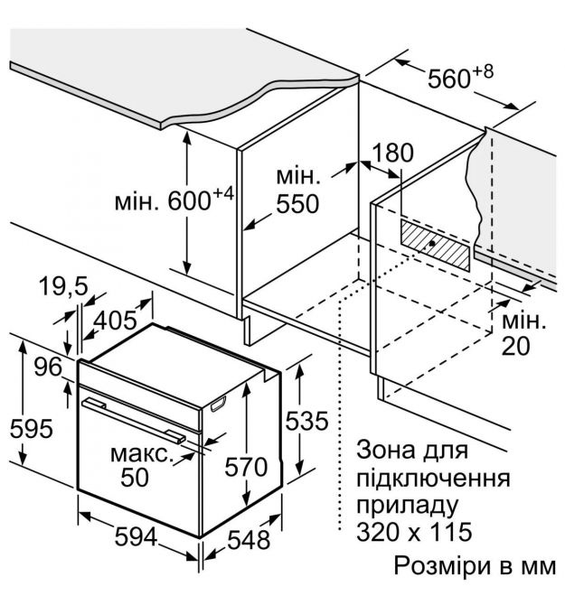 | Размеры ниши (Ш x В x Г) | 560–568 x 585–595 x 550 |