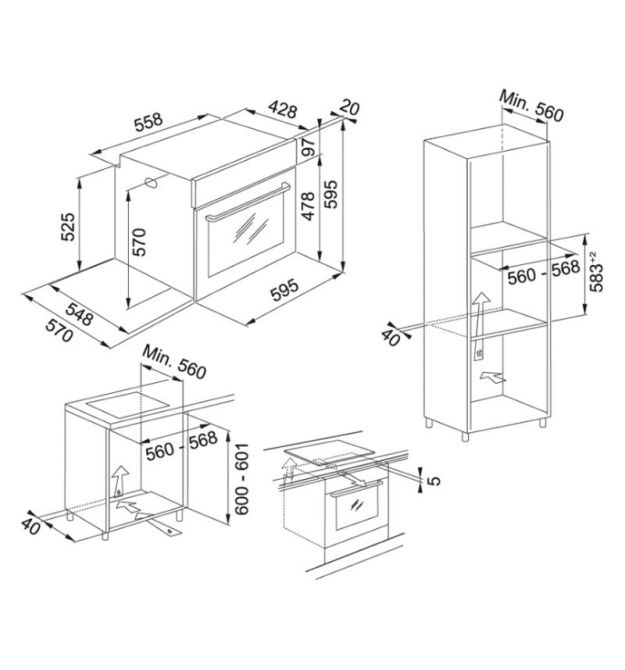 | Размеры ниши (Ш x В x Г) | 560 × 590 × 550 |