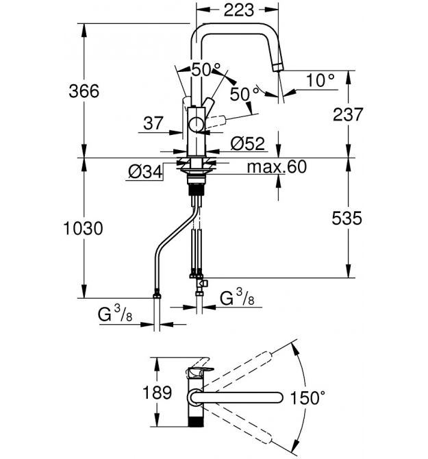 | Тип виливу | поворотний (150°) |