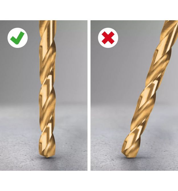 Роздвоєний під кутом 135° наконечник набору свердел забезпечує швидке центрування для зручного свердління та водночас гарантує чисте й швидке свердління.