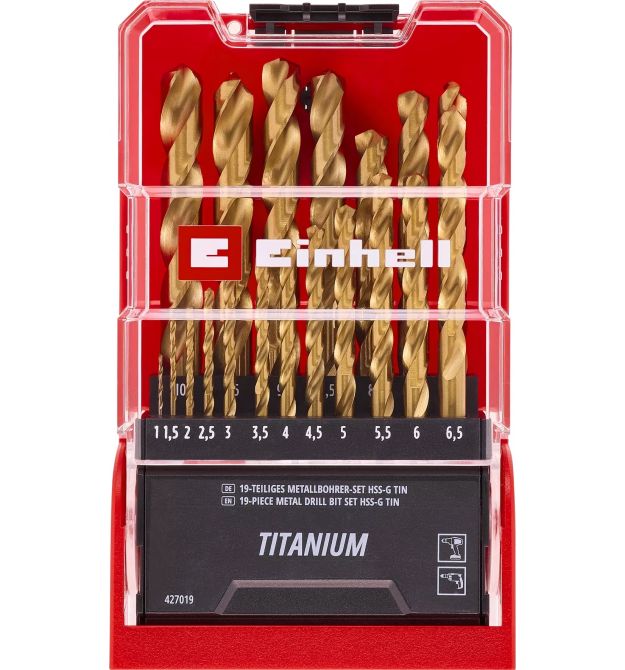 Свердла акуратно зберігаються в кейсі для зберігання Einhell. Це означає, що потрібний інструмент завжди під рукою для кожного проєкту.