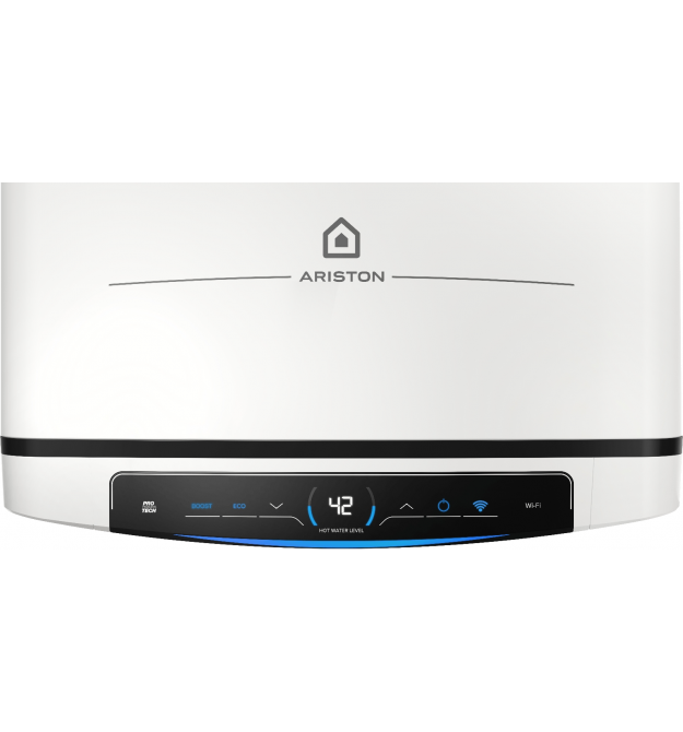 Водонагрівач Ariston простий і гнучкий в установці. Відрізняється високою якістю, неперевершеною зручністю експлуатації та преміальним дизайном. Складається з подвійного титанового та магнієвого анода для постійного захисту двох резервуарів. Його висококласний сенсорний екран забезпечує оптимальний комфорт користувача та інтеграцію в будь-який інтер'єр. Також має вбудований Wi-Fi та сухий ТЕН.