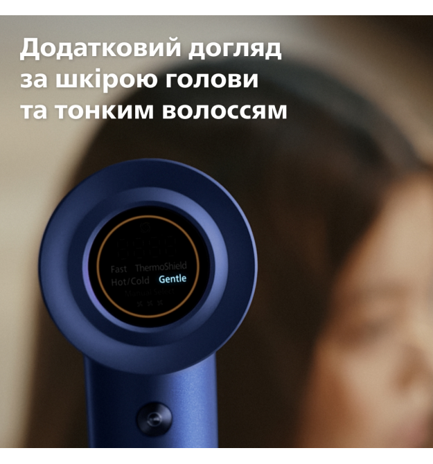 Подбайте про шкіру голови та тонке волосся за допомогою спеціально запрограмованого делікатного режиму сушіння. 97% користувачів⁷ підтверджують, що цей режим забезпечує м'який та ніжний догляд за шкірою голови.