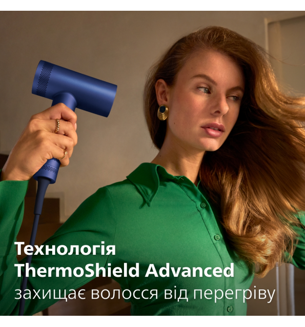 Технологія ThermoShield Advanced подбає про захист вашого волосся від теплових пошкоджень, зберігаючи до 100% його природної сили. Датчики вимірюють температуру навколишнього середовища до 200 разів на секунду, автоматично регулюючи температуру сушіння, щоб зберегти ваше волосся від пересушування.