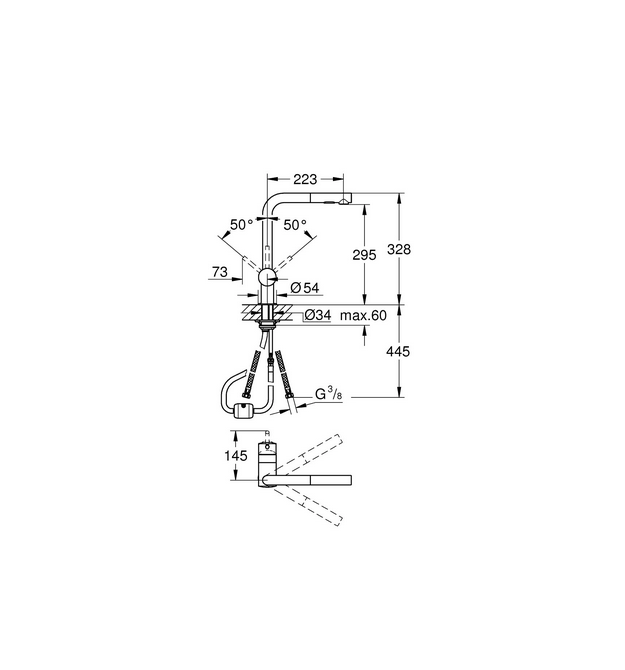| Тип виливу | висувний вилив |