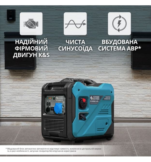 Вбудований електронний блок з мікропроцесорним керуванням контролює роботу генератора та забезпечує стабільну вихідну напругу 230 В 50 Гц синусоїдальної форми, що підходить для надійної роботи чутливої електроніки.