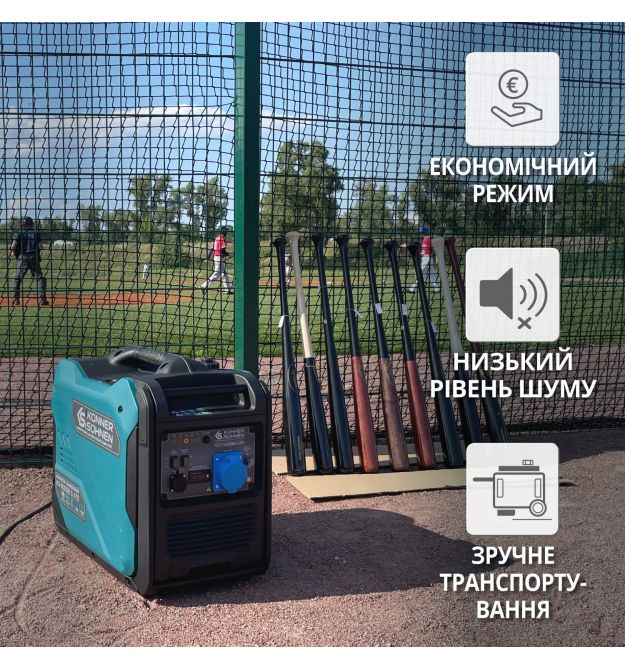 Шумозахисний корпус забезпечує мінімальний рівень шуму (70 дБ Lpa 7 м), комфортне використання і зручне транспортування.