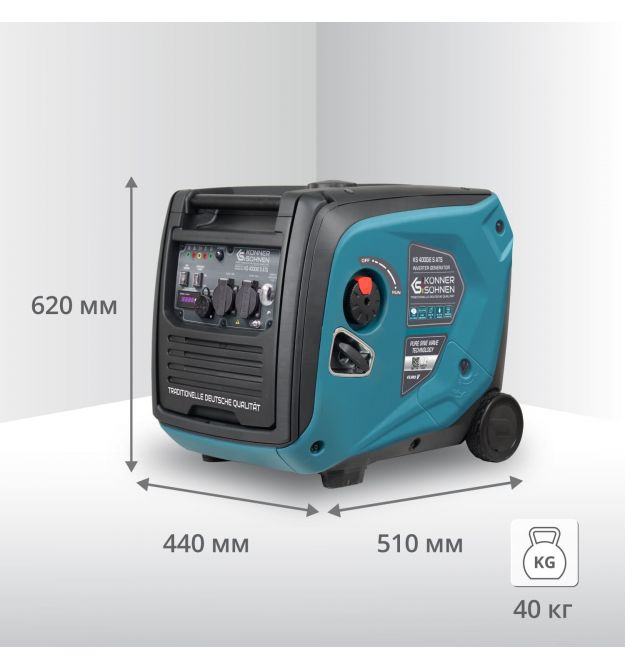 У генераторах інверторного типу Könner & Söhnen встановлено високоякісний безщітковий альтернатор зі 100% мідною обмоткою. Надійний і компактний альтернатор встановлений на постійних магнітах, у пластиковому кожусі та може витримувати максимальні навантаження без пошкоджень, що гарантує тривалу надійну роботу генераторної установки.