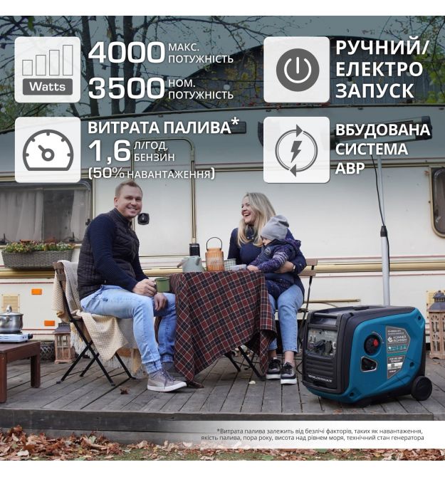 | Тип генератора | інверторний, бензиновий |