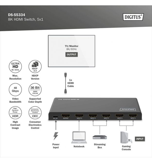 | Комплектація | 1x переключатель HDMI |