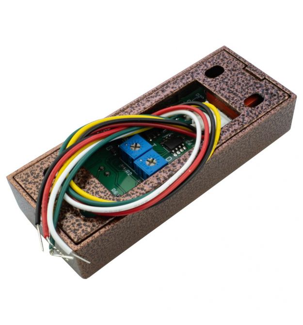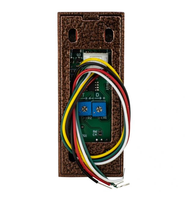 SEVEN K-7496ND bronze — это антивандальная сенсорная кнопка выхода с бесконтактным управлением, предназначенная для систем контроля доступа и домофонов.Устройство обеспечивает бесконтактное управление посредством определения приближающейся руки без физического прикосновения. Активация срабатывает на расстоянии 5-20 см, дальность реагирования можно регулировать. Срабатывание производится в пределах от 0,3 до 30 секунд в зависимости от заданных настроек.Модель поддерживает контакты реле NO, NC, COM и совместима с большинством типов замков.SEVEN K-7496ND оснащена стильной двухцветной светодиодной подсветкой, которая не только сигнализирует о срабатывании, но и обеспечивает удобный поиск кнопки открытия замка даже при слабом или полном отсутствии освещения.Интуитивно понятная индикация делает использование максимально комфортным: синий цвет указывает на режим ожидания, а зелёный — на открытие двери. Благодаря этому кнопка остаётся удобной и наглядной в любых условиях освещения.Кнопка выхода имеет литой антивандальный корпус современного дизайна с защитой от влаги DNW: IP68 что позволяет устанавливать устройство на улице.Особенности бесконтактной (NO TOUCH) металлической уличной кнопки выхода SEVEN K-7496NDW:Выполнена в металлическом, антивандальном корпусе. Позволяет открывать замок двери без касания рукой кнопки выхода, срабатывает на расстоянии до 20 см. Предназначена для установки на улицу (степень пыле и влагозащиты IP67). Подсветка - в режиме ожидания индикатор светится синим цветом, в момент открытия двери - зеленым. Подходит для установки вместе с аудио и , . Предназначена для систем контроля и управления доступом. Накладной тип монтажа кнопки позволяет установить ее на любую поверхность. Кнопка имеет световую LED индикацию сработки, регулировку чувствительности сенсора, регулировку времени задержки при сработке.Основные характеристики антивандальной кнопки выхода с подсветкой SEVEN K-7496ND W для СКУД:Тип установки: накладной. Материал корпуса: метал. Контакты: NO, NC, COM. Входное напряжение: 12 В, 24 в Защита от влаги DNW: IP68 Минимальный ресурс: 500000 Время задержки: пользовательский 0,3-30 с. Чувствительность сенсора: настраиваемая 5-20 см. Рабочая температура: -20С + 55С Размер: 80х32х17 мм. Вес 80г Цвет: бронза