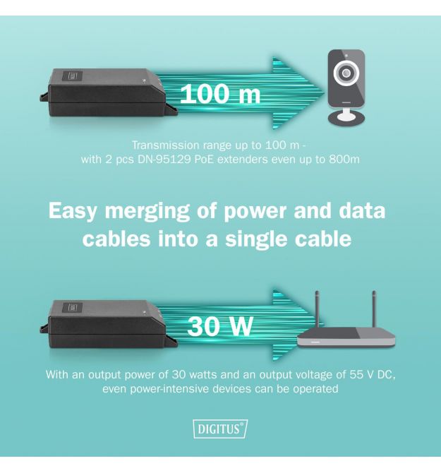 | Дальність передачі | 100 м (з розширювачем PoE DN-95129 до 800 м) |
