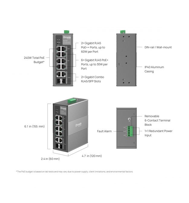 | Бюджет потужності PoE | 240 Вт |