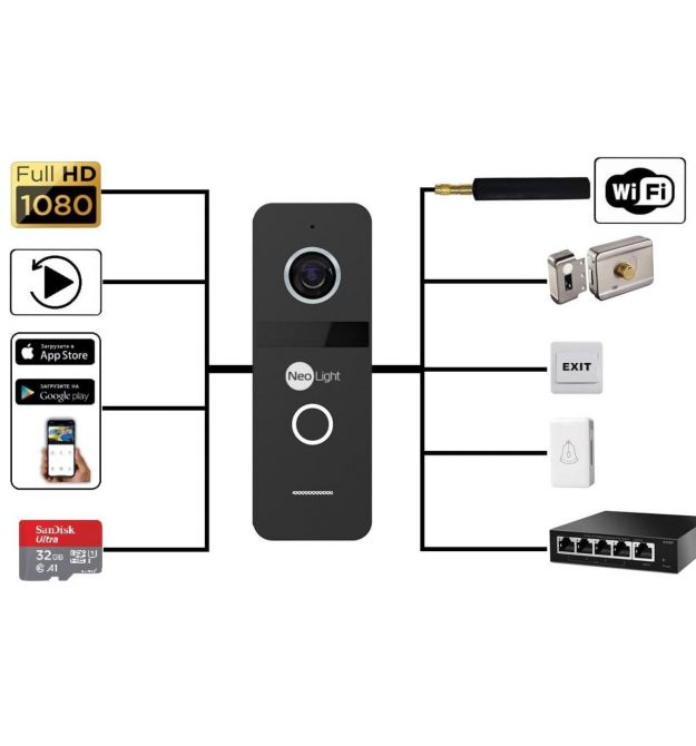 Solo IPW – это первое многофункциональное IP устройство в линейке NeoLight, которое может использоваться как полноценная профессиональная домофонная система. Основным преимуществом IP-вызывной панели Solo IPW является ее способность работать автономно без домофона. При этом панель:записывает видео по движению на встроенную память; имеет возможность открывать замок и ворота; позволяет подключать к себе кнопку выхода; позволяет подключать к себе стандартный электрический дверной звоноккоторый дублирует вызов от посетителя в помещении и помогает в случаях нестабильного или полного отсутствия интернета.Видео записывается со звуком на встроенную память 32ГБ в разрешении 1080р. Управление архивами, замком, а также другими настройками осуществляется через смартфон с помощью мобильного приложения NeoLight (iOS, Android).Подключить панель к Интернету можно с помощью LAN кабеля или WiFi соединения, при этом надежное качество WiFi сигнала обеспечивается именно благодаря небольшой герметичной выносной антенне, которая легко прячется при монтаже. IP видеопанель Solo IPW отправляет PUSH сообщение на смартфон при обнаружении движения (при необходимости) и при нажатии на кнопку вызова.Дополнительным преимуществом является наличие в комплекті РоЕ адаптера, который позволяет подключать панель до 220В и избежать дополнительных затрат на организацию питания.Основные функции мобильного приложения "NeoLight":Поддержка “push” сообщений о входящих вызовы и движение (при необходимости). Уведомления о пропущенных вызовах с датой, временем и фото посетителя. Видеовызов от посетителя. Разговор с посетителем, управление замком и воротами. Запись фото/видео с вызывной панели или камер. Доступ к просмотру видеоархива в мониторе. Просмотр вызывной панели и камер, подключенных к домофону, в режиме ожидания (без получения входящего вызова). Выбор разрешения между SD/HD в зависимости от качества связи. Дуплексная аудиосвязь.Особенности IP видеопанели NeoLight Solo IPW:Мультиформатная профессиональная камера с разрешением 1920х1080 - качество изображения – на уровне. Данная IP камера обеспечивает четкое Full HD видео. Режим True Day/Night - реальная цветопередача днем и идеальное черно-белое изображение ночью благодаря настоящему ИК-фильтру, встроенному в камеру (ICR). Режим DNR - цифровое подавление шумов, максимально минимизирующее возможность появления шумов в темное время суток на изображении, что повышает информативность и экономит место на micro SD карте при работе со встроенным в домофон детектором движения. Smart IR - теперь любой человек, подходящий близко к панели в темное время суток при включенном ИК подсветке, будет вами узнаваема, т.к. технология Smart IR автоматически уменьшает интенсивность инфракрасной подсветки в панели при близком расположении объекта и, таким образом, убирает засветку с лица вашего гостя. Мощное ИК подсветки - новые ИК светодиоды с расширенным спектральным диапазоном позволяют панели Solo IPW видеть в темноте до 5 м. PoE адаптер в комплекте.При этом, видеопанель Solo IPW также имеет:сверхширокий угол обзора 110 градусов; ненавязчивая подсветка кнопки вызова в режиме ожидания, что помогает быстро сориентироваться в темноте и не искать панель на ощупь; автоматическая настройка усиления микрофона и спикера; управление электромеханическим замком; ИК-подсветка.Видеопанель Solo IPW можно устанавли