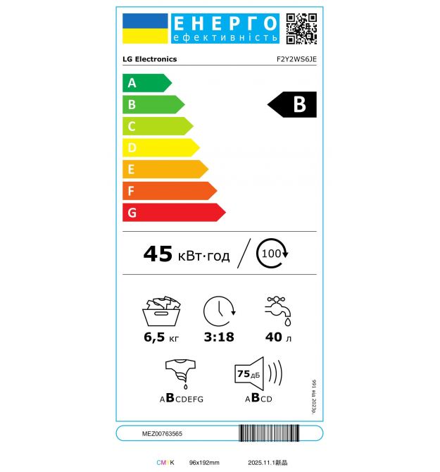 | Клас енергоспоживання | B |