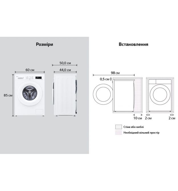 | Завантаження білизни для прання | 6 кг |